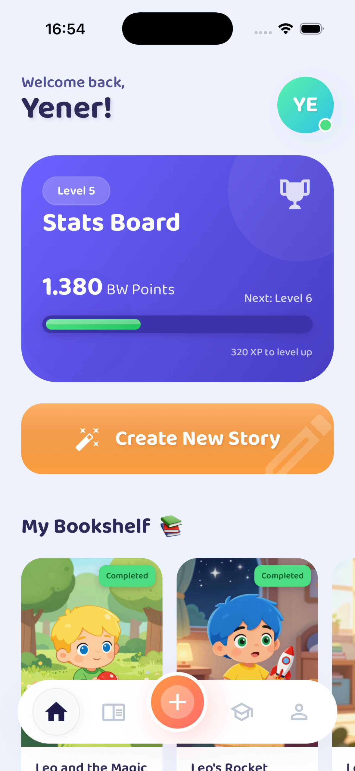 Çocuğunuzla birlikte sadece size özel İngilizce hikayeler yaratın. Okuma ve dinleme özellikleriyle ekran süresini, keşif ve öğrenme dolu sihirli bir maceraya dönüştürün.